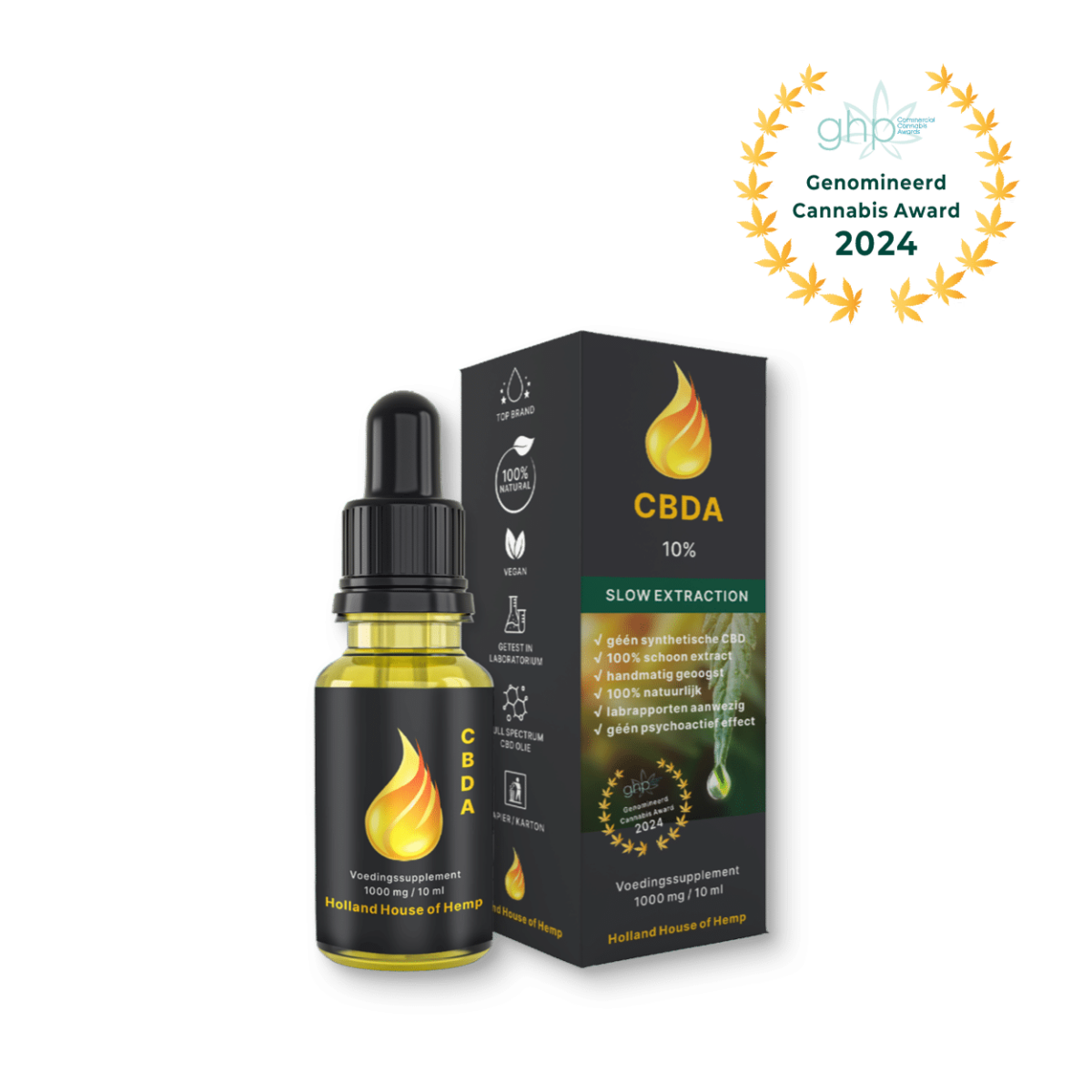 CBDA voor volwassen op basis van 10%. Onze CBDA olie bevat allerlei natuurlijke stoffen.Een rijk assortiment aan cannabinoïden, flavonoïden en terpenen.